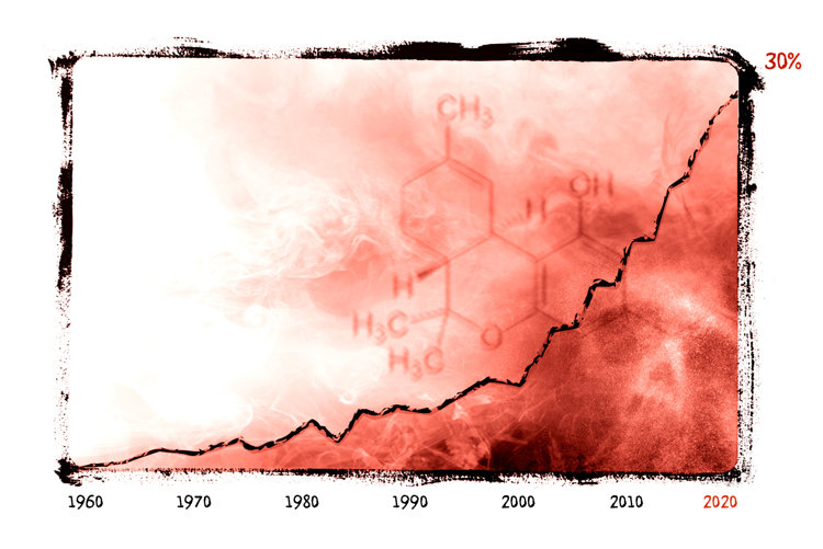• In the 2020s, the average potency is up to almost 30 percent.